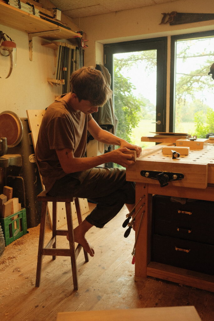 På træværkstedet arbejder Lea og Gustav, som begge er uddannet møbelsnedkere fra Capellagården i Sverige. Siden deres uddannelse har de arbejdet både sammen og individuelt på en række forskellige projekter.